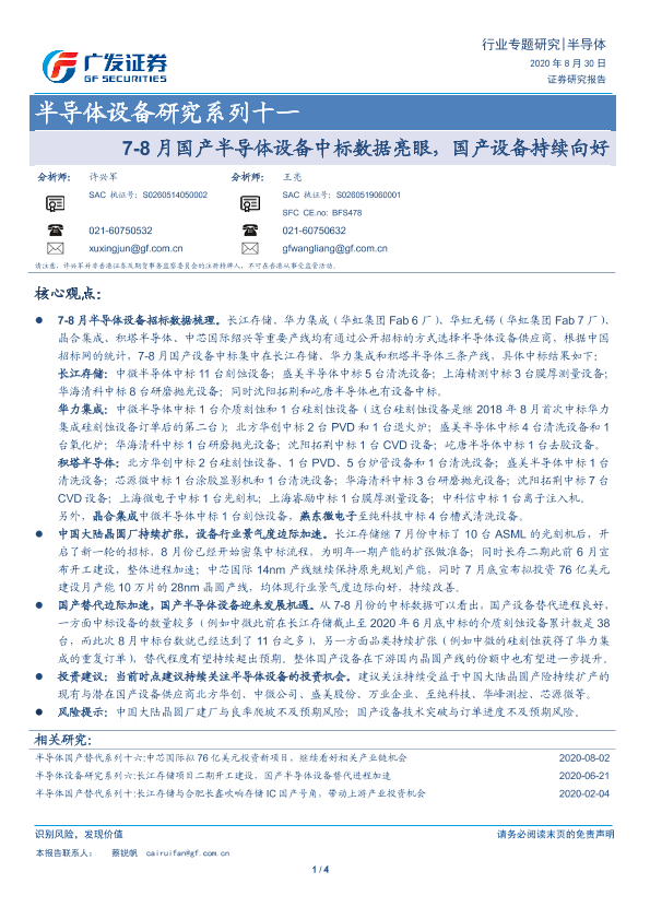 【广发证券】【20200830】7-8月国产半导体设备中标数据亮眼,国产设备持续向好-4页