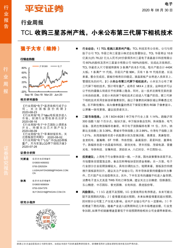 【平安证券】【20200830】20200830-平安证券-电子行业周报:TCL收购三星苏州产线,小米公布第三代屏下相机技术-5页