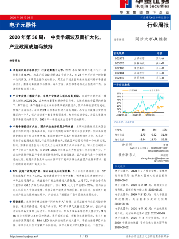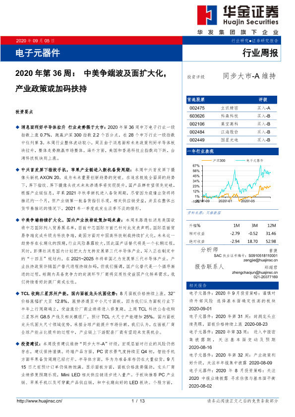 【华金证券】【20200905】2020年第36周:中美争端波及面扩大化,产业政策或加码扶持-13页