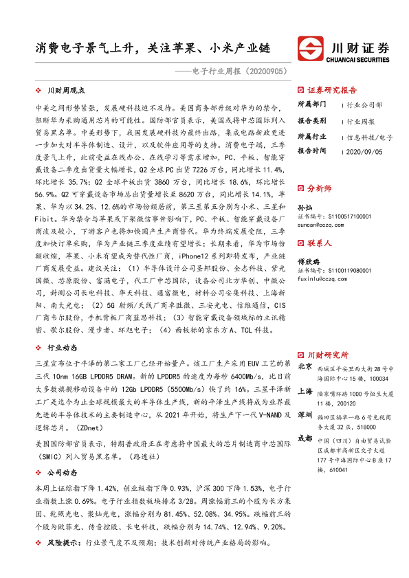 【川财证券】【20200905】消费电子景气上升,关注苹果、小米产业链-11页