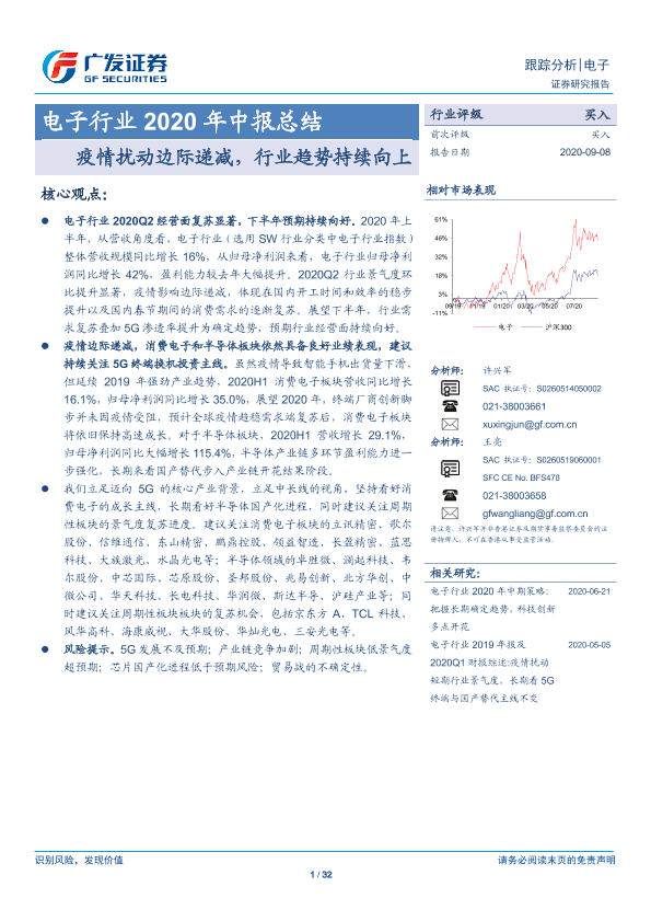 【广发证券】【20200908】电子行业2020年中报总结:疫情扰动边际递减,行业趋势持续向上-32页