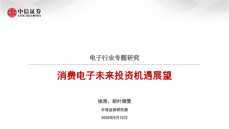 【中信证券】【20200910】电子行业专题研究:消费电子未来投资机遇展望-58页
