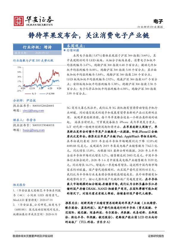 【华安证券】【20200912】20200912-华安证券-电子行业周报:静待苹果发布会,关注消费电子产业链-17页