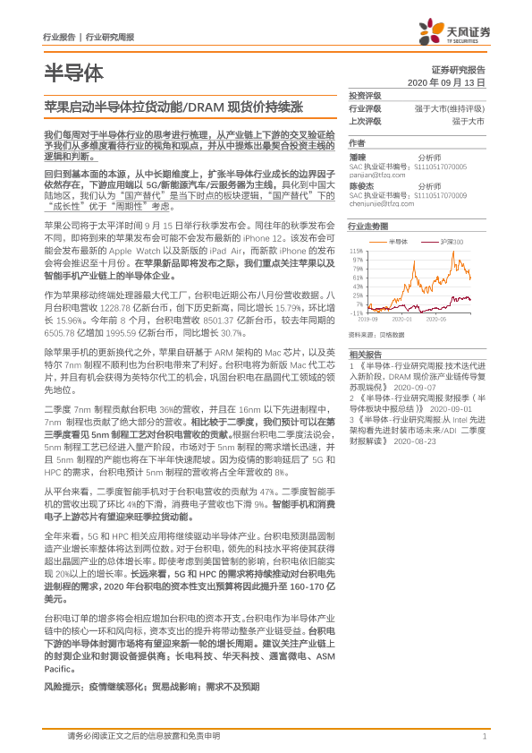【天风证券】【20200913】20200913-天风证券-半导体行业研究周报:苹果启动半导体拉货动能 DRAM现货价持续涨-11页