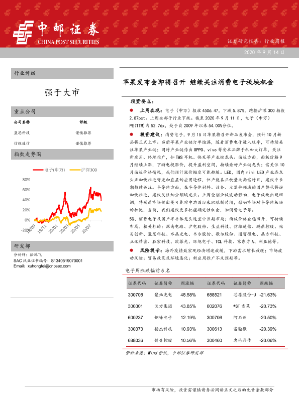【中邮证券】【20200914】20200914-中邮证券-电子行业周报:苹果发布会即将召开 继续关注消费电子板块机会-9页