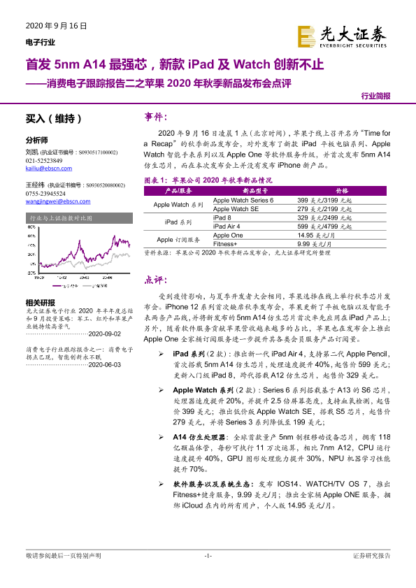 【光大证券】【20200916】消费电子跟踪报告二之苹果2020年秋季新品发布会点评:首发5nmA14最强芯,新款iPad及Watch创新不止-6页