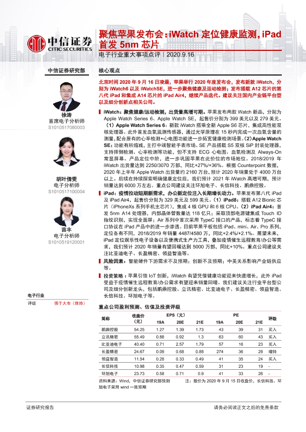 【中信证券】【20200916】聚焦苹果发布会:iWatch定位健康监测,iPad首发5nm芯片-10页
