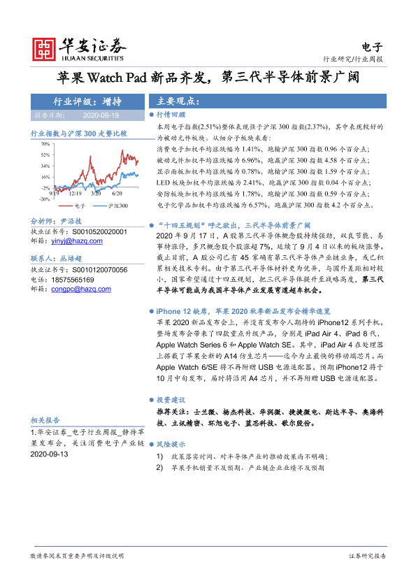 【华安证券】【20200919】20200919-华安证券-电子行业周报:苹果Watch Pad新品齐发,第三代半导体前景广阔-16页