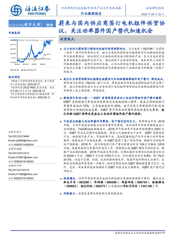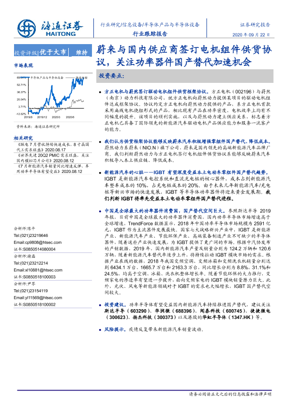 【海通证券】【20200922】蔚来与国内供应商签订电机组件供货协议,关注功率器件国产替代加速机会-2页
