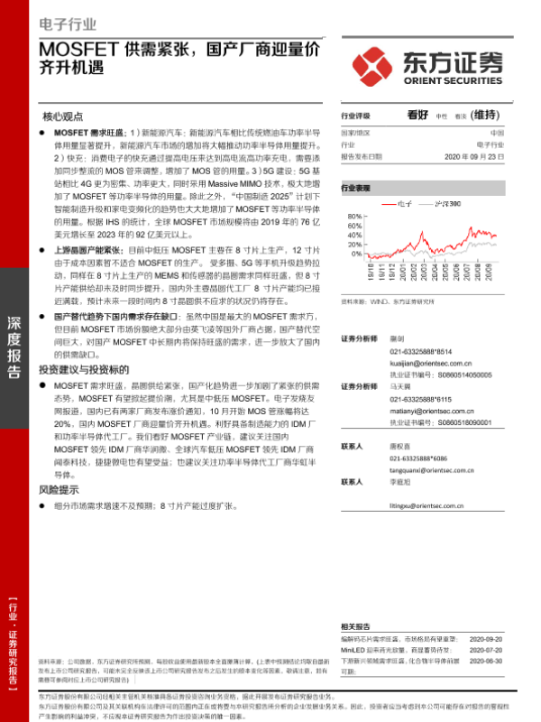 【东方证券】【20200923】电子行业:MOSFET供需紧张,国产厂商迎量价齐升机遇-11页