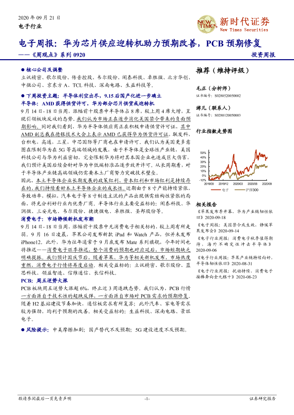 【新时代证券】【20200921】电子周报:华为芯片供应迎转机助力预期改善,PCB预期修复-17页