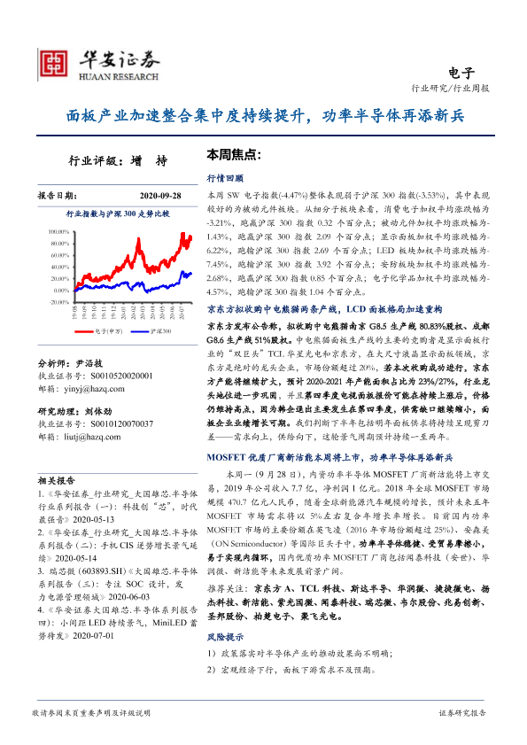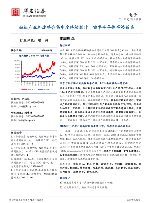 【华安证券】【20200928】20200928-华安证券-电子行业周报:面板产业加速整合集中度持续提升,功率半导体再添新兵-13页