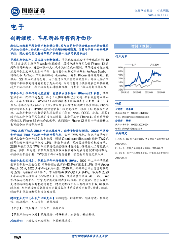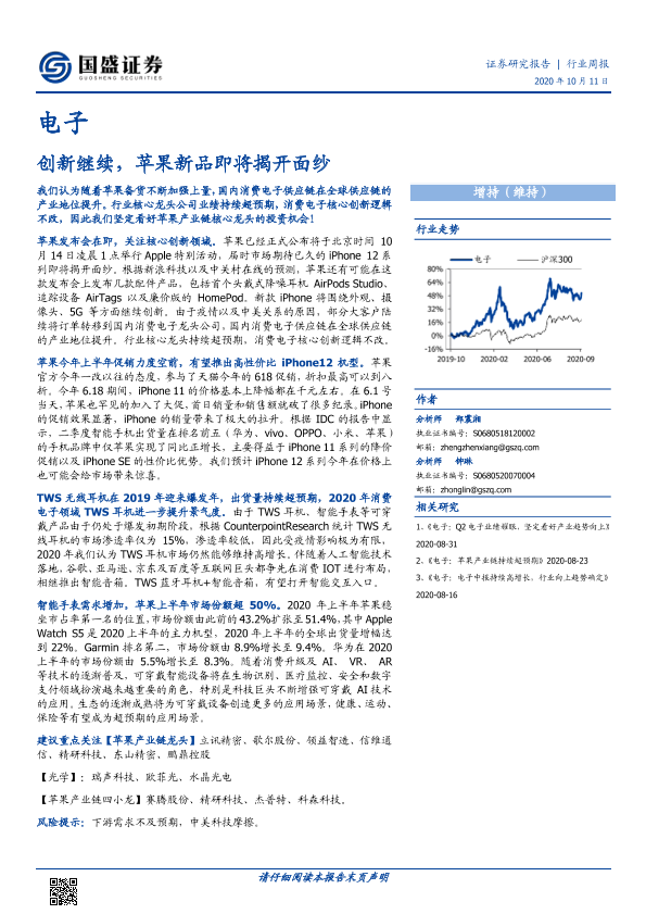 【国盛证券】【20201011】电子行业周报:创新继续,苹果新品即将揭开面纱-17页
