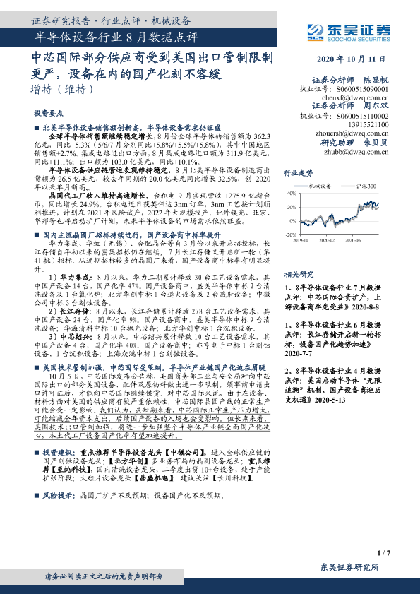 【东吴证券】【20201011】半导体设备行业8月数据点评:中芯国际部分供应商受到美国出口管制限制更严,设备在内的国产化刻不容缓-7页