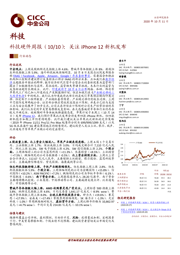 【中金公司】【20201011】科技硬件周报:关注iPhone 12新机发布-13页