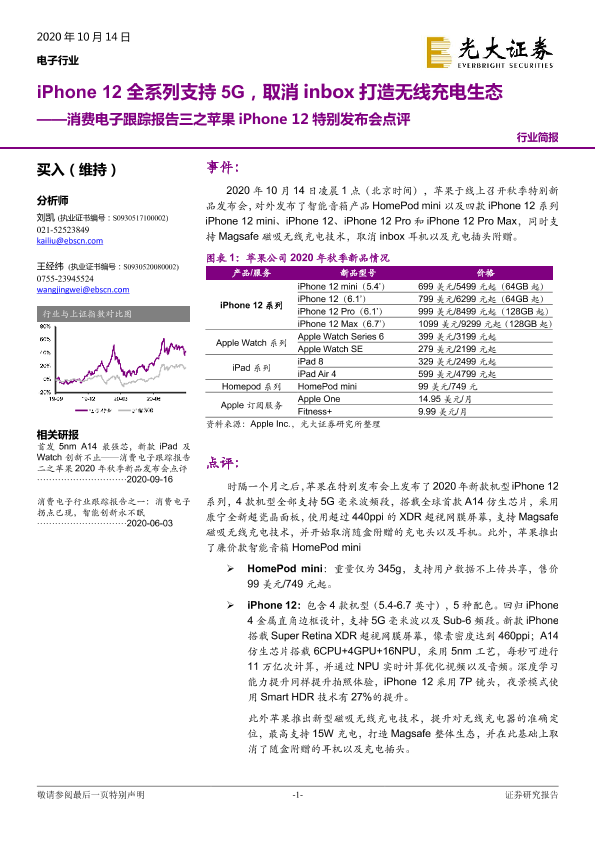 【光大证券】【20201014】消费电子跟踪报告三之苹果iPhone12特别发布会点评:iPhone12全系列支持5G,取消inbox打造无线充电生态-5页