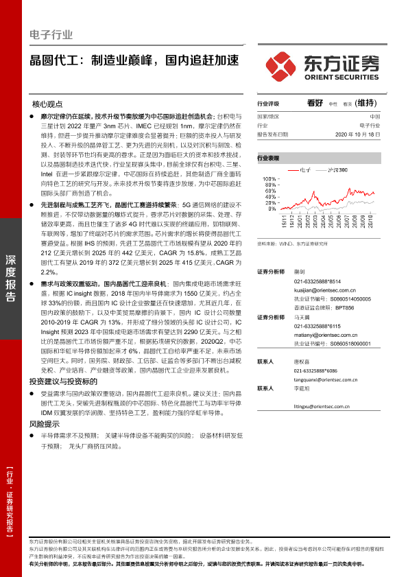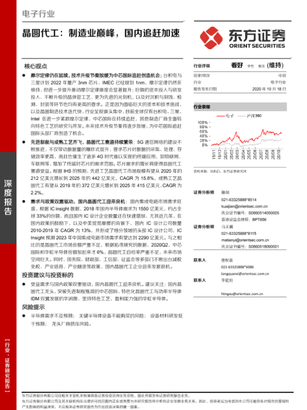 【东方证券】【20201018】电子行业深度报告:晶圆代工:制造业巅峰,国内追赶加速-39页