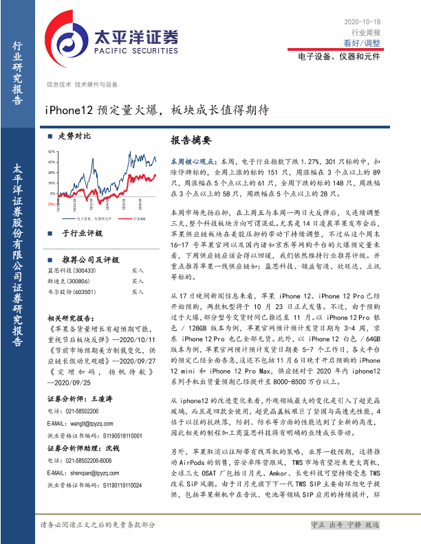 【太平洋证券】【20201018】20201018-太平洋-电子设备、仪器和元件行业周报:iPhone12预定量火爆,板块成长值得期待-14页