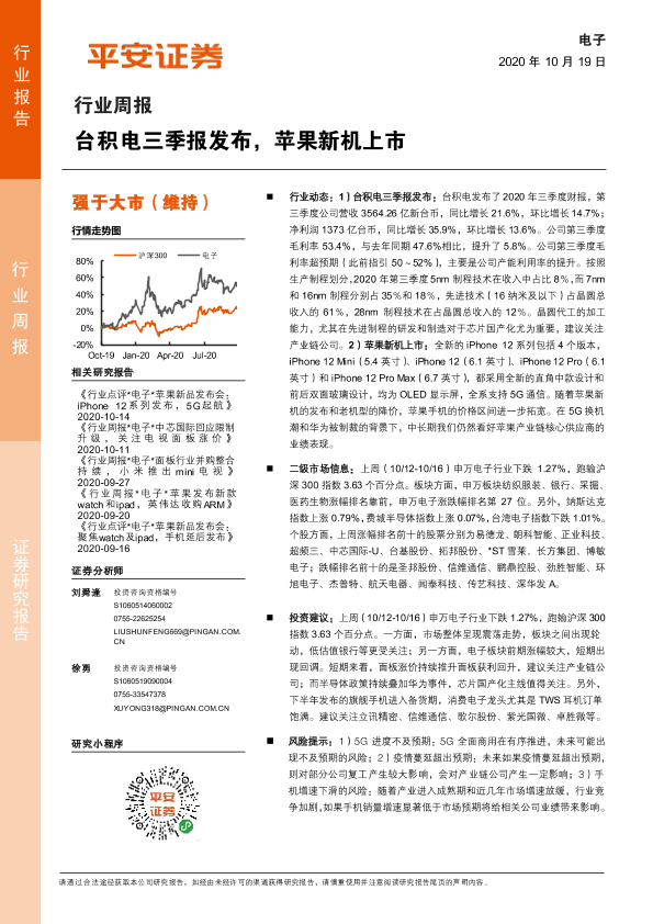 【平安证券】【20201019】20201019-平安证券-电子行业周报:台积电三季报发布,苹果新机上市-5页