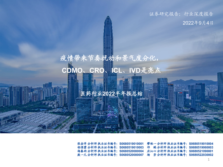 【国盛证券】【20220904】医药行业2022半年报总结:疫情带来节奏扰动和景气度分化,CDMO、CRO、ICL、IVD是亮点-73页