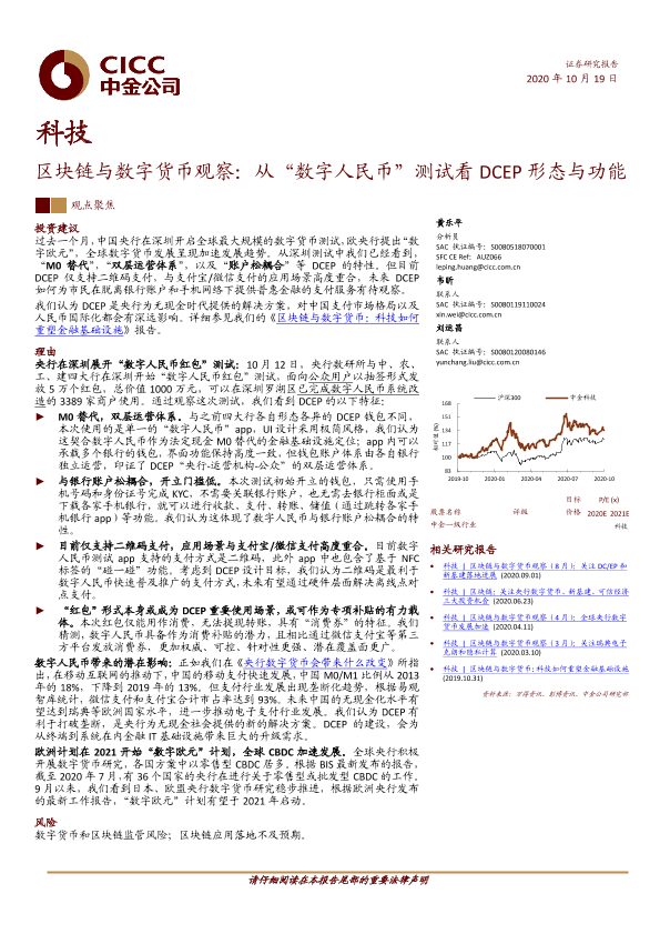 【中金公司】【20201019】区块链与数字货币观察:从“数字人民币”测试看DCEP形态与功能-18页