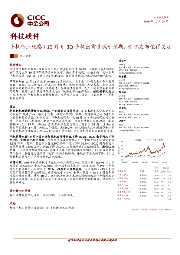 【中金公司】【20201020】手机行业观察(10月):3Q手机出货量低于预期,新机发布值得关注-10页