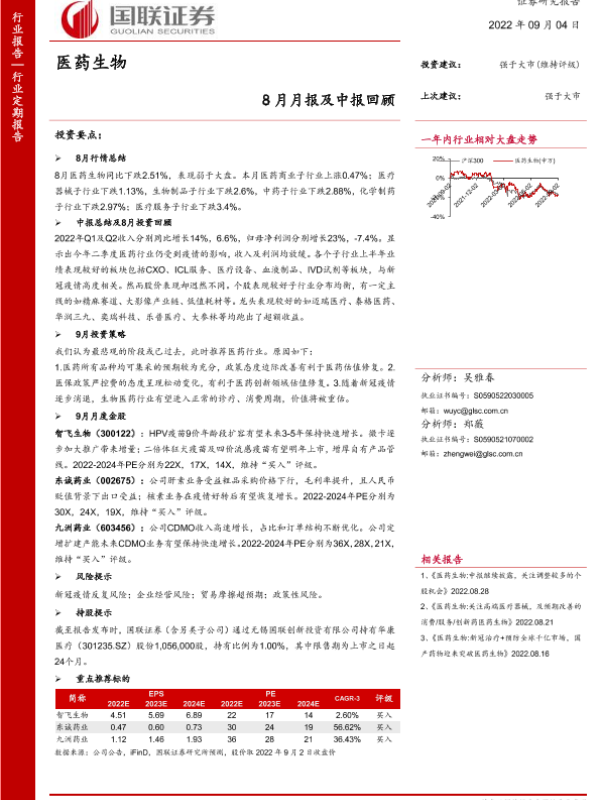 【国联证券】【20220904】医药生物行业:8月月报及中报回顾-23页