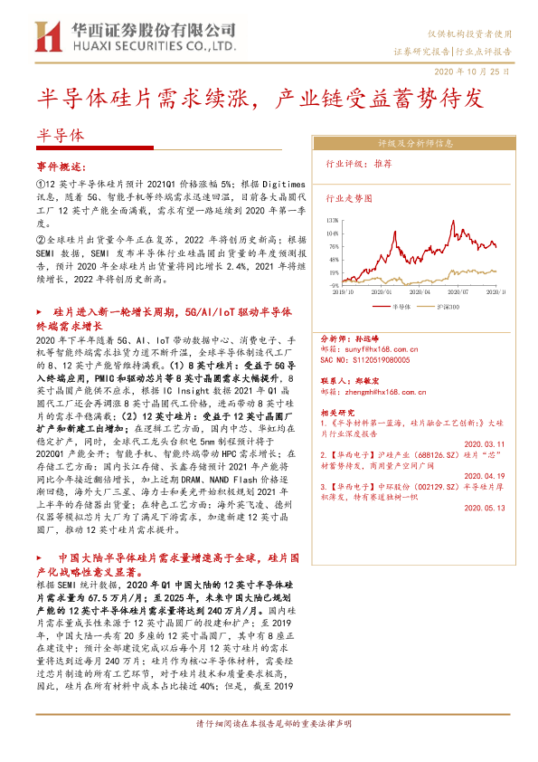 【华西证券】【20201025】半导体:半导体硅片需求续涨,产业链受益蓄势待发-5页