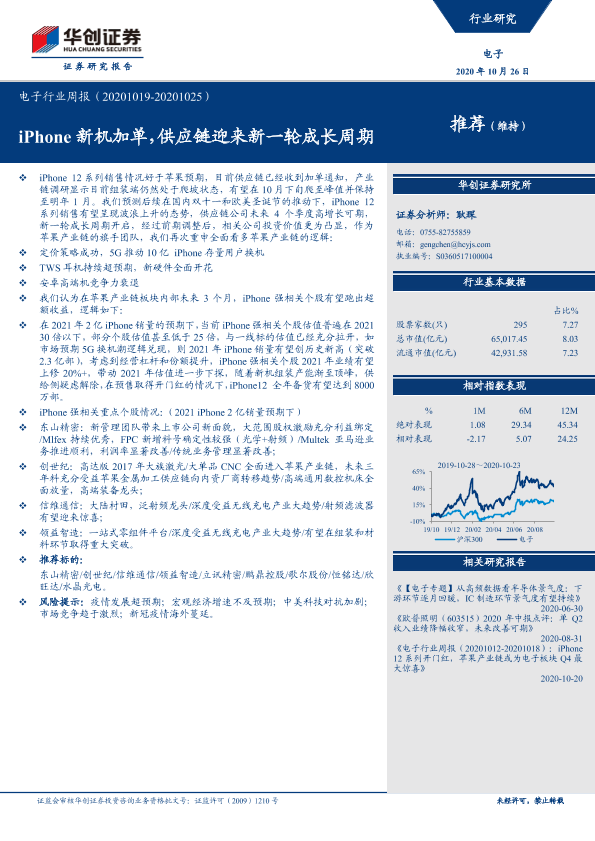 【华创证券】【20201026】电子行业周报:iPhone新机加单,供应链迎来新一轮成长周期-20页