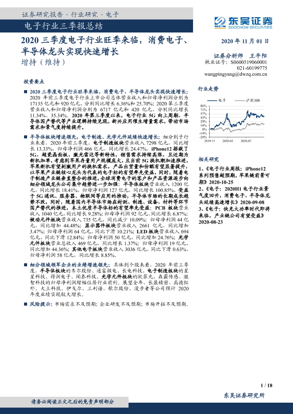 【东吴证券】【20201101】2020三季度电子行业旺季来临,消费电子、半导体龙头实现快速增长-18页
