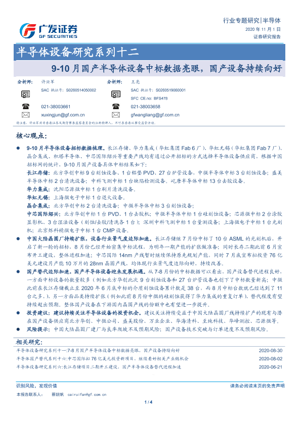 【广发证券】【20201101】9-10月国产半导体设备中标数据亮眼,国产设备持续向好-4页