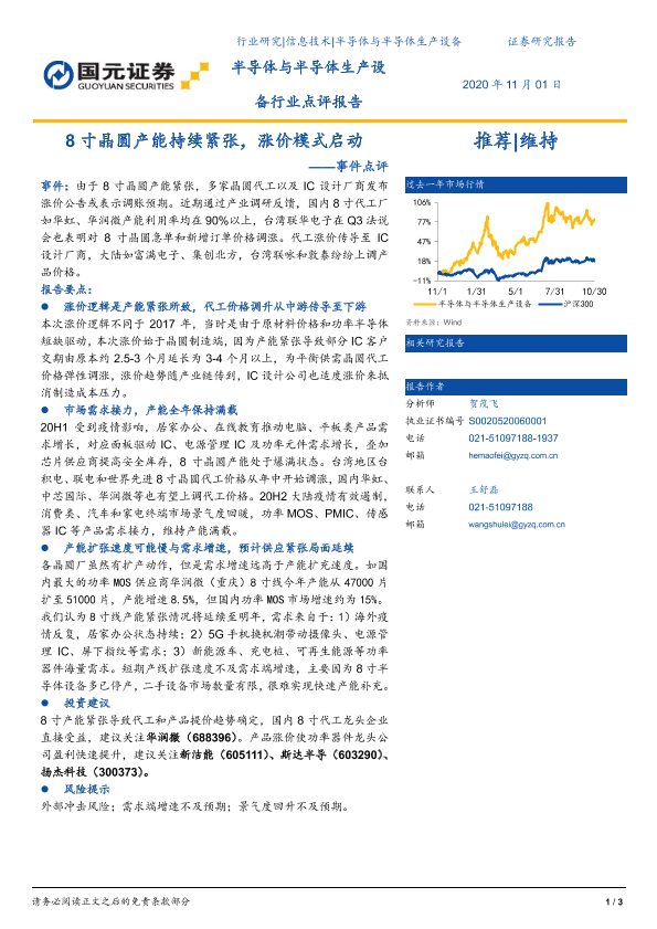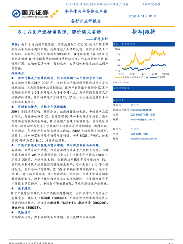 【国元证券】【20201101】半导体与半导体生产设备行业点评报告:8寸晶圆产能持续紧张,涨价模式启动-3页