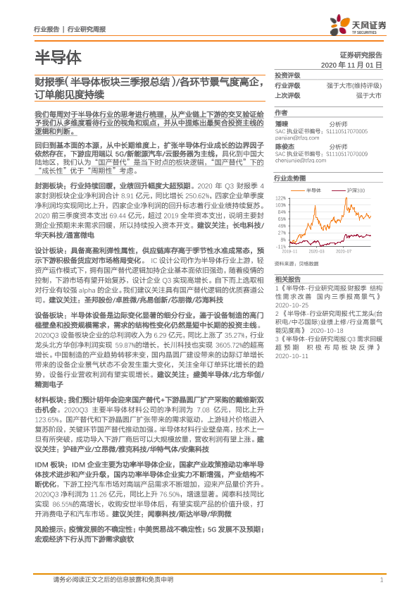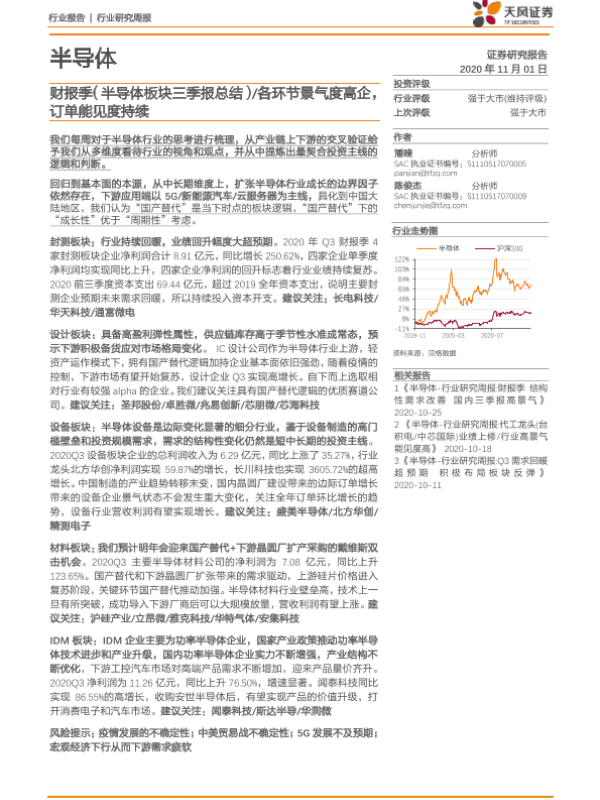 【天风证券】【20201101】20201101-天风证券-半导体行业研究周报:财报季(半导体板块三季报总结) 各环节景气度高企,订单能见度持续-21页
