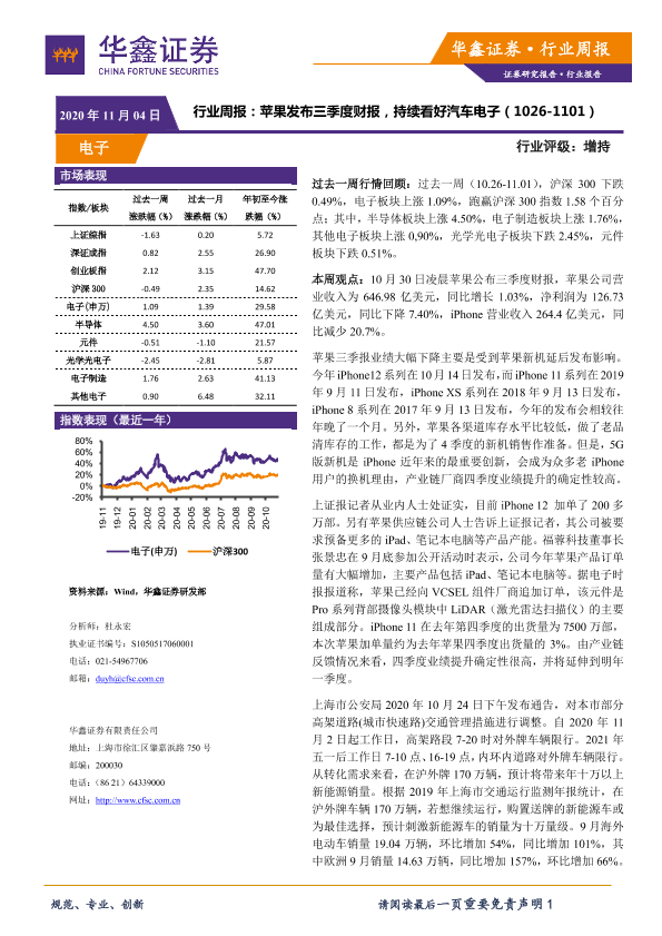 【华鑫证券】【20201104】20201104-华鑫证券-电子行业周报:苹果发布三季度财报,持续看好汽车电子-14页