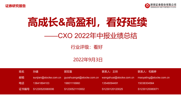 【浙商证券】【20220903】医药行业CXO2022年中报业绩总结:高成长&高盈利,看好延续-24页