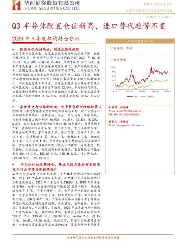 【华西证券】【20201107】2020年三季度机构持仓分析 Q3半导体配置仓位新高,进口替代趋势不变-38页