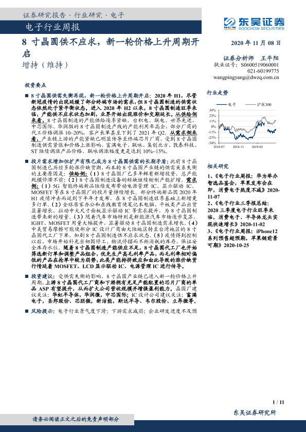 【东吴证券】【20201108】电子行业周报:8寸晶圆供不应求,新一轮价格上升周期开启-11页
