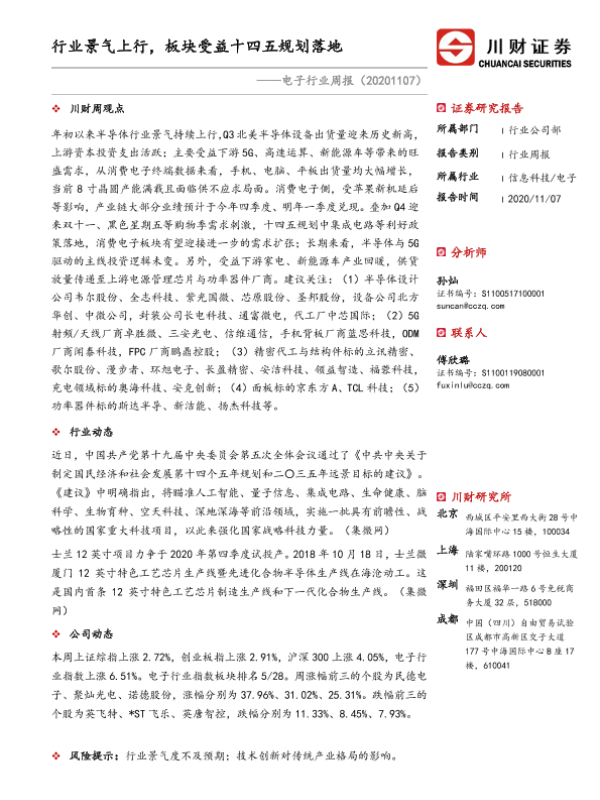 【川财证券】【20201107】电子行业周报:行业景气上行,板块受益十四五规划落地-11页