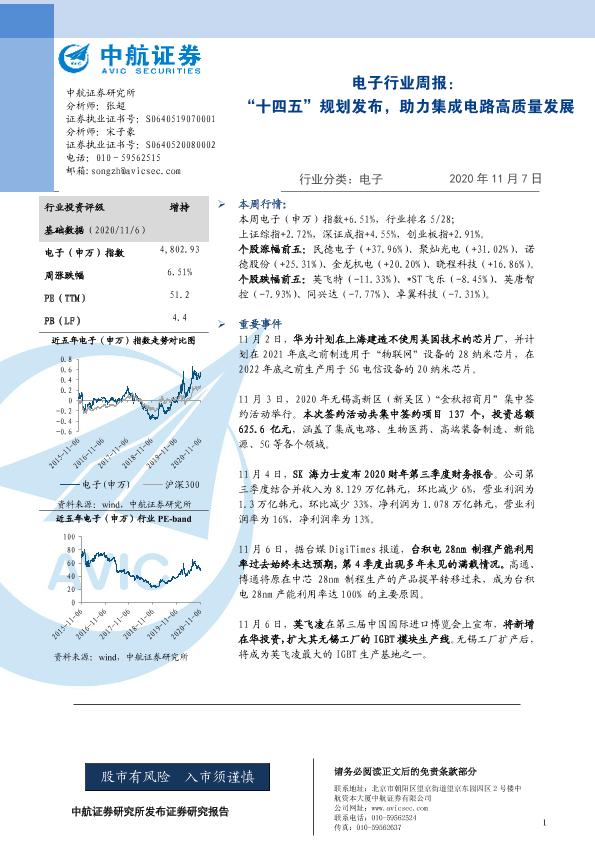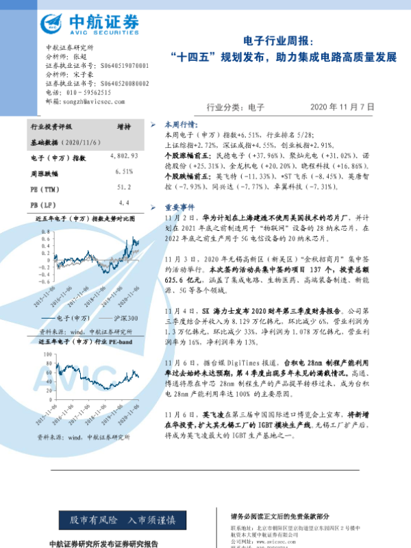 【中航证券】【20201107】电子行业周报:“十四五”规划发布,助力集成电路高质量发展-5页