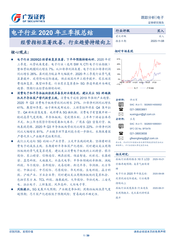 【广发证券】【20201108】电子行业2020年三季报总结:经营指标显著改善,行业趋势持续向上-39页