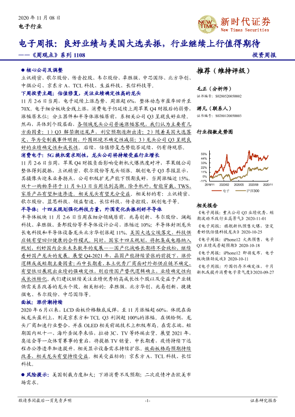 【新时代证券】【20201108】电子周报:良好业绩与美国大选共振,行业继续上行值得期待-16页