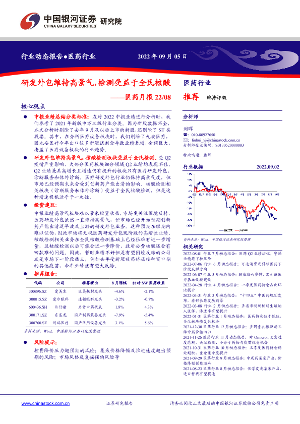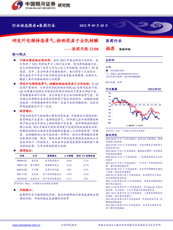 【银河证券】【20220905】医药行业月报:研发外包维持高景气,检测受益于全民核酸-20页