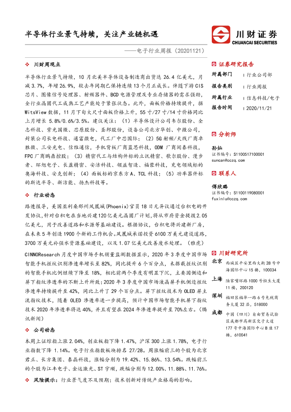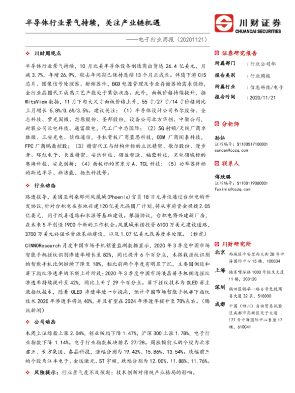 【川财证券】【20201121】电子行业周报:半导体行业景气持续,关注产业链机遇-10页
