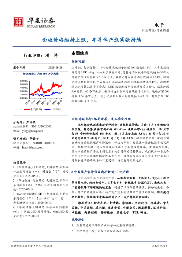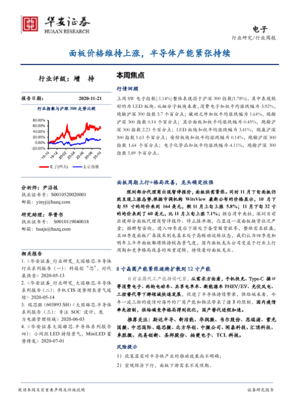 【华安证券】【20201121】20201121-华安证券-电子行业周报:面板价格维持上涨,半导体产能紧张持续-15页