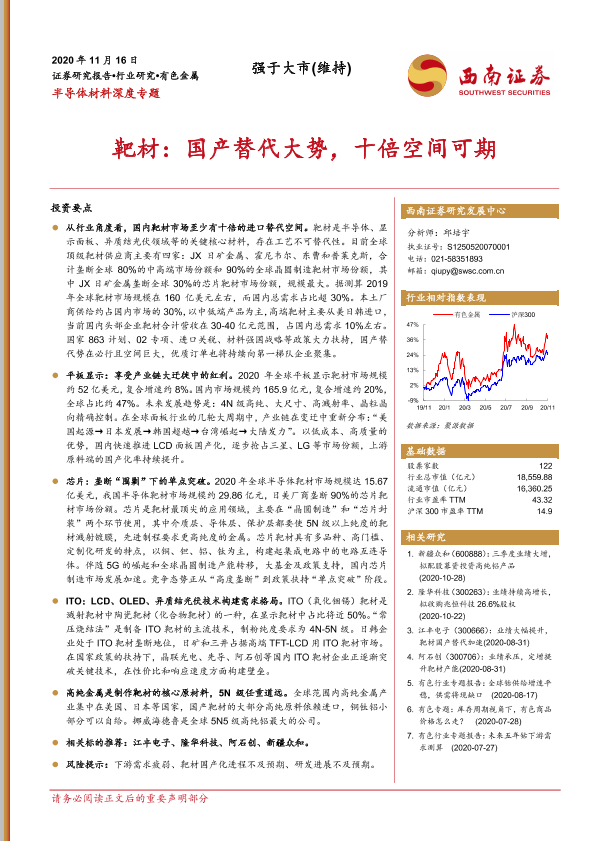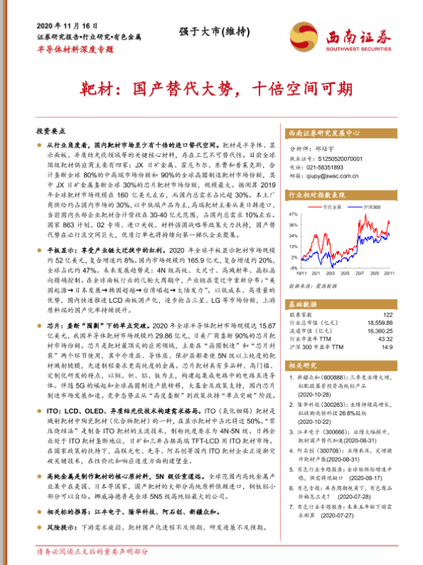 【西南证券】【20201116】半导体材料深度专题:靶材:国产替代大势,十倍空间可期-84页