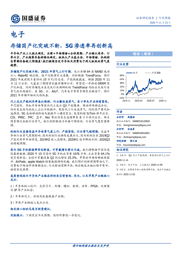 【国盛证券】【20201123】电子行业周报:存储国产化突破不断,5G渗透率再创新高-15页