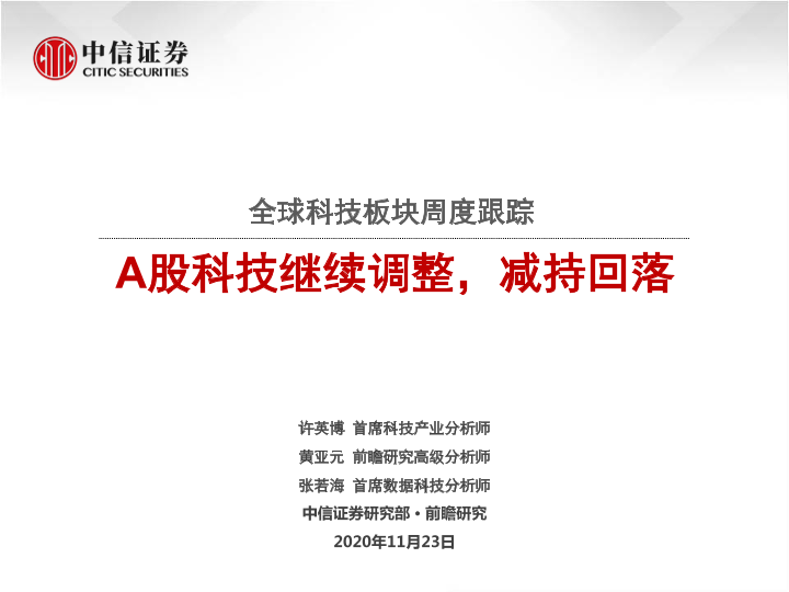 【中信证券】【20201123】全球科技板块周度跟踪:A股科技继续调整,减持回落-41页