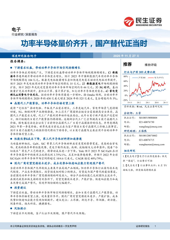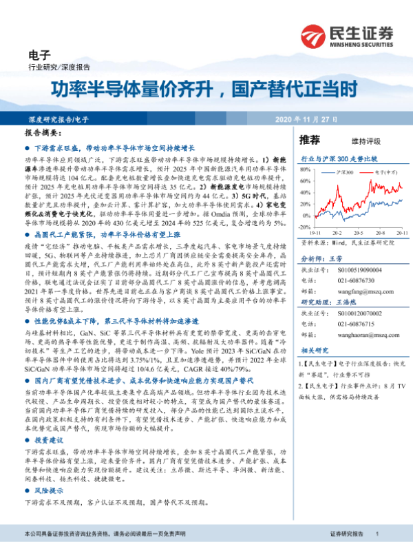 【民生证券】【20201127】电子深度报告:功率半导体量价齐升,国产替代正当时-31页