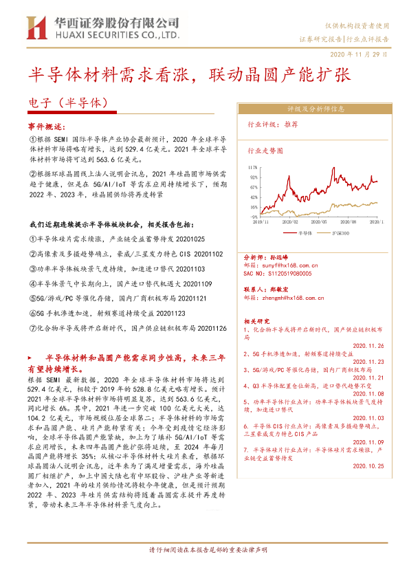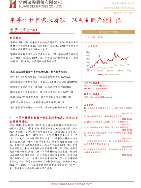 【华西证券】【20201129】电子(半导体):半导体材料需求看涨,联动晶圆产能扩张-6页