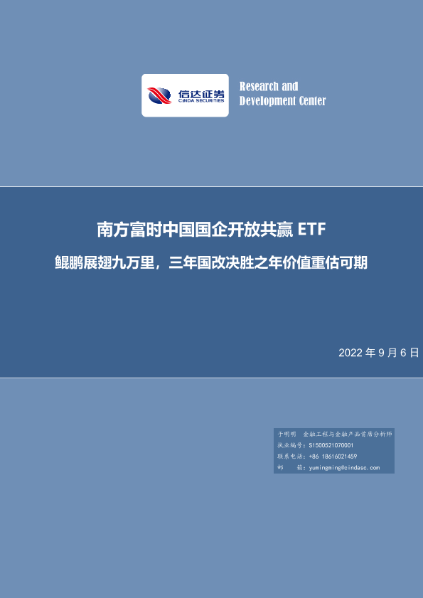 【信达证券】【20220906】南方富时中国国企开放共赢ETF:鲲鹏展翅九万里,三年国改决胜之年价值重估可期-20页